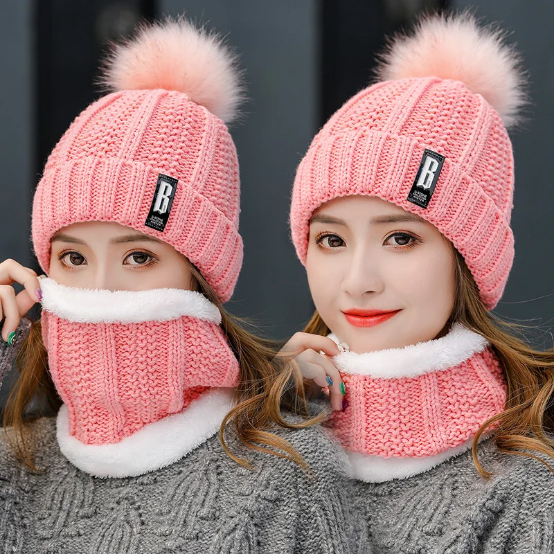 Autumn Winter Knitted Beanies Hats Scarf Set Women Thick Warm Hat Female Knit Letter Bonnet Beanie Caps Outdoor Windproof Riding Skullies Beanies Aliexpress